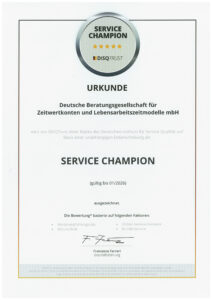 Die DISQ-Tester hoben bei der Preisverleihung besonders den klaren Web-Auftritt, „der Unternehmen und Arbeitnehmern gleichermaßen schnelle Orientierung und Zugang zu wichtigen Informationen“ biete hervor, wie auch die eindrucksvollen „Best Practice-Referenzen“ wie das Bistum Münster oder die Sparkasse Magdeburg. Harald Röder wollte bei der Preisverleihung den Aspekt der Steigerung der Arbeitgeberattraktivität durch die Einführung von Zeitwertkonten nicht unerwähnt lassen. „Die moderne Arbeitswelt braucht innovative und zukunftsgerichtete Personallösungen. Zeitwertkonten sind ein Schlüssel dafür.“
