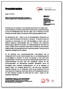Weiterer Pluspunkt für Pflegekräfte und Erzieher – AWO Oberbayern führt Lebensarbeitszeitmodell ein. … Mit der Einführung eines Lebensarbeitszeitmodells („AWO-Zeitwert“) fügt die oberbayerische AWO nun einen weiteren Baustein hinzu, um die Arbeitsbedingungen für die Beschäftigten zu verbessern. So können die Mitarbeiter ab sofort jeden Monat Entgeltbestandteile in flexibler Höhe oder auch das Weihnachtsgeld zunächst steuer- und sozialversicherungsfrei auf einem Wert- oder Langzeitkonto ansparen. Mehr…