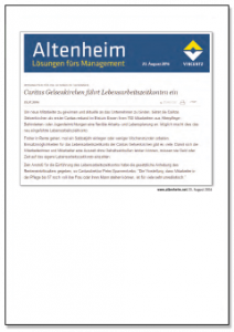 Zeitwertkonten sind attraktiv. Caritasverband Gelsenkirchen führt Lebensarbeitszeitkonten ein. Fachkräfte suchen sich zunehmend den zukünftigen Arbeitgeber in der Altenpflege nach „weichen“ Kriterien aus, wozu auch die Möglichkeit der flexiblen Gestaltung der Lebensarbeitszeit gehört. Der Caritasverband Gelsenkirchen hat darauf reagiert und ein Lebensarbeitszeitkonto eingeführt. Das erhöht seine Attraktivität als Arbeitgeber. Mehr…