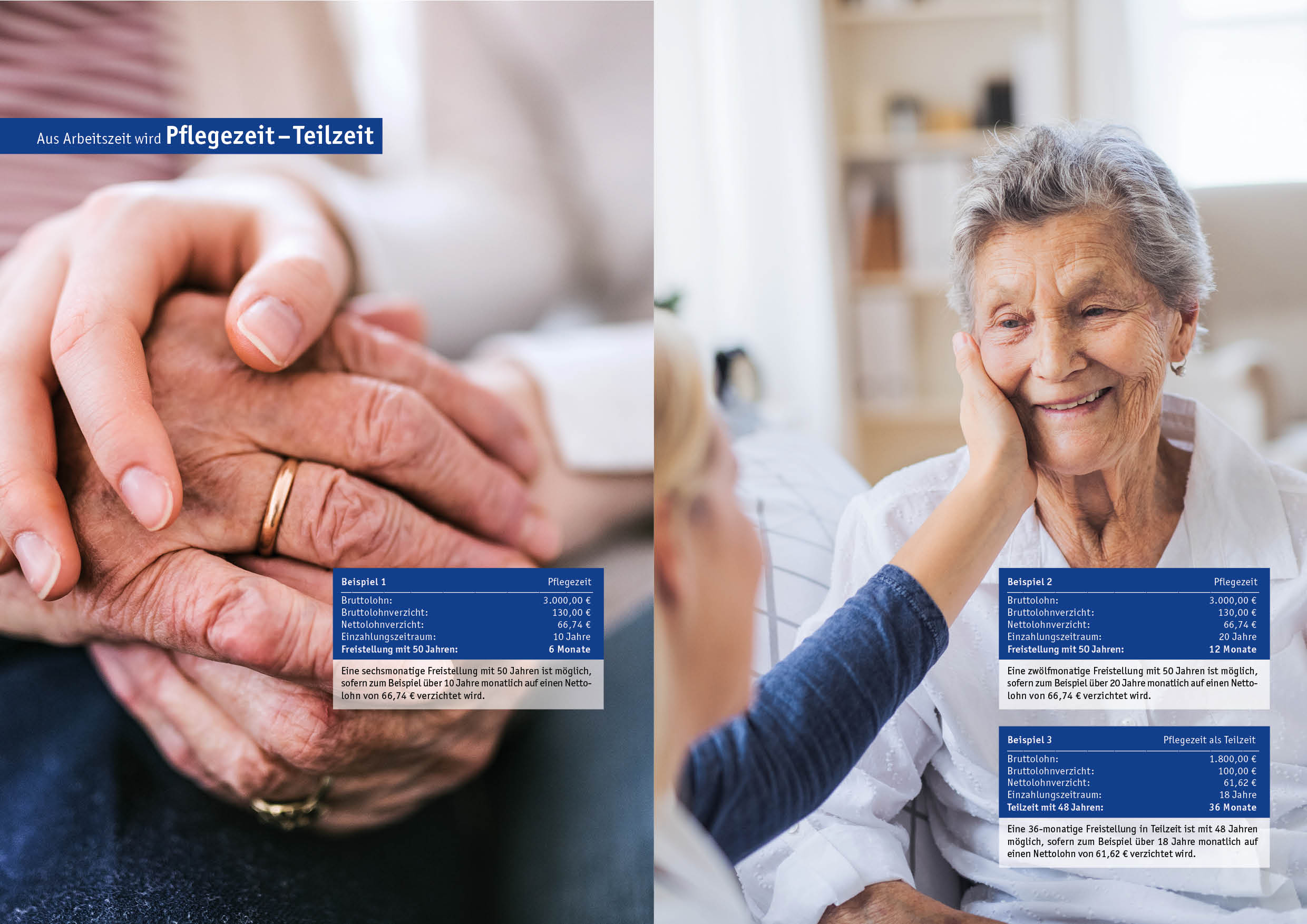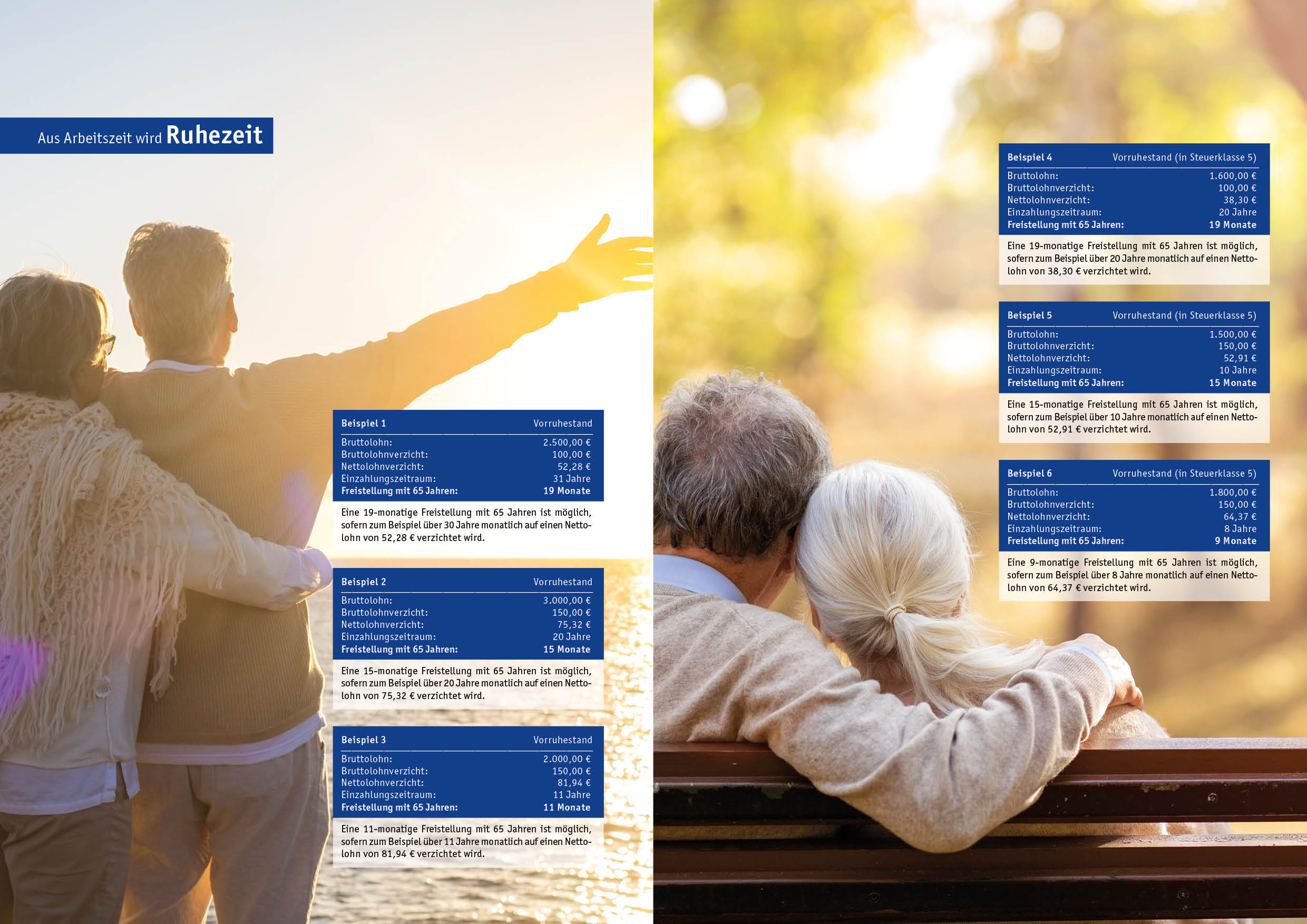 - Die Arbeitszeit kann ohne Gehaltseinbußen reduziert werden – ein gleitender und sozialverträglicher Vorruhestand wird sichergestellt.