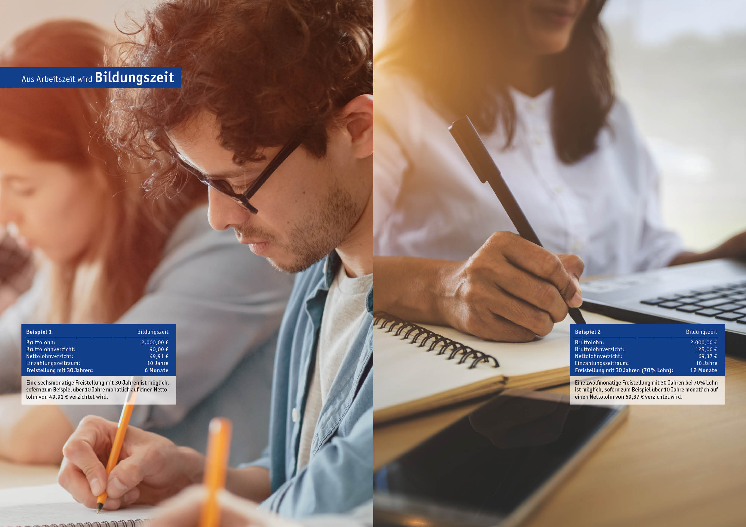 Aus Arbeitszeit wird Reisezeit, Auszeit, Familienzeit, Bildungszeit, Pflegezeit, Teilzeit und Ruhezeit. Lassen Sie sich von den Verwendungsbeispielen zu den verschiedenen Freistellungen auf den nächsten Seiten inspirieren (alle Einzahlungsvarianten und Zeiträume sind Beispiele und können je nach Bedarf angepasst werden).